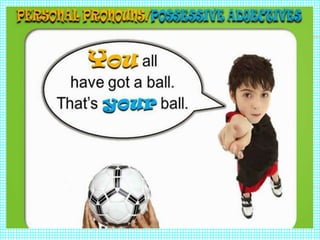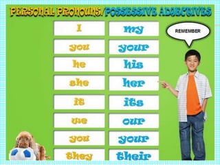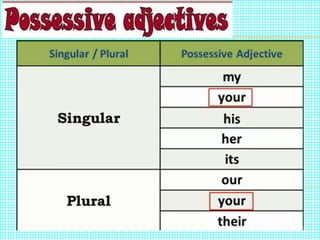 Possessive adjectives are used to indicate ownership or possession. The possessive adjectives include my, your, his, her, its, our, your, their. These possessive adjectives can be used before nouns to show who or what owns or possesses the noun.