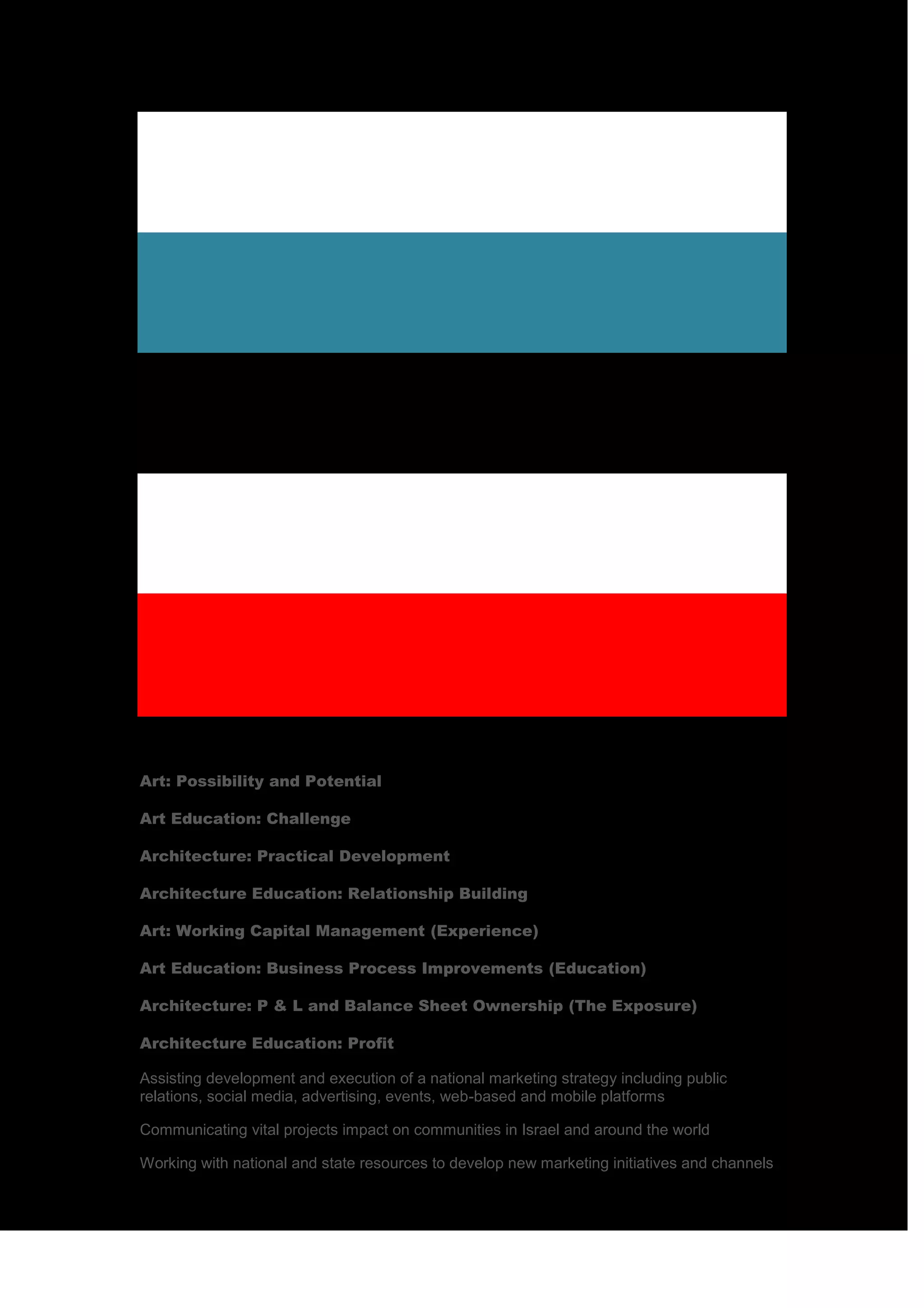 The document discusses various topics related to art, architecture, and their respective educations including working capital management and experience in art, practical development and relationship building in architecture education, owning profit and loss statements and balance sheets with architecture exposure, and developing marketing strategies through communication and working with resources to impact communities.