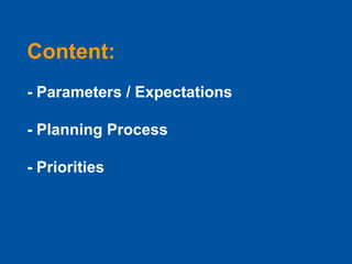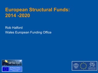 The document discusses the European Structural Funds for 2014-2020. It outlines the Commission's expectations, which include delivering on Europe 2020 policies and strategic goals, integrating different funds, focusing on performance and achieving outcomes, and concentrating resources. Thematic objectives are outlined for ERDF and ESF funds, focusing on research/innovation, SMEs, low-carbon economy, employment, education, and social inclusion. Proposed priorities for Wales include SME competitiveness, R&D, infrastructure, energy, young people, employment, skills, and sustainable development. The planning process and partner engagement are also summarized.
