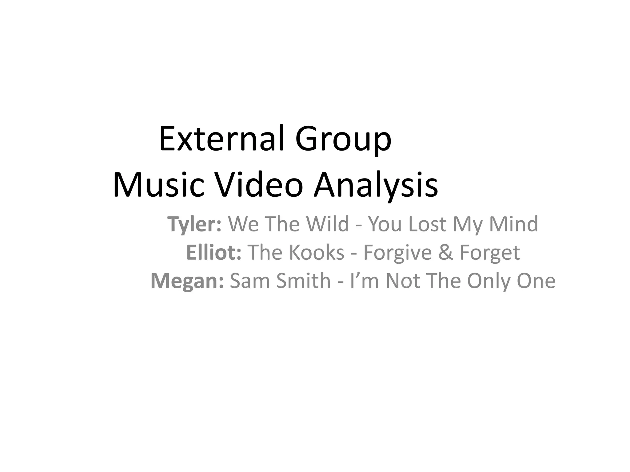 1. The video analyzes three different music videos: We The Wild - You Lost My Mind, The Kooks - Forgive & Forget, and Sam Smith - I'm Not The Only One.