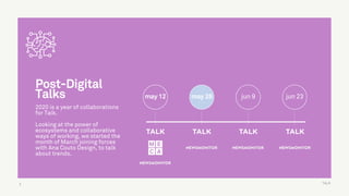 The document discusses the impact of the pandemic on human relationships and social interactions, emphasizing how social distancing has led to new forms of connection and creativity. It highlights the emerging concept of a 'new normal', where people reassess priorities and develop new rituals and routines as they spend more time at home. Furthermore, it addresses the rise in remote activities, meaningful consumption, and changes in community support for local businesses during this period.