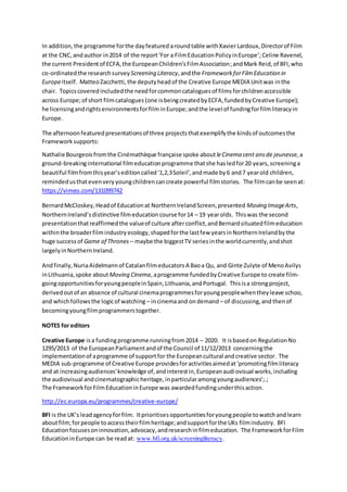 On June 19th, 2015, 50 delegates from across Europe gathered at the Cinémathèque française in Paris to discuss the future of film education in Europe and launch A Framework for Film Education in Europe. The Framework establishes common goals and outcomes for film education across Europe. It brings together the knowledge and experiences of over 25 partners from various film education organizations. The event highlighted several successful film education programs and their importance in developing film appreciation in young people.