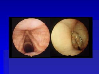 The document discusses post-extubation stridor, which is upper airway obstruction that can occur after a patient is extubated from a ventilator. It defines post-extubation stridor and reviews risk factors such as duration of intubation and cuff pressures. The cuff leak test is presented as a way to identify patients at risk. Studies are reviewed showing steroids given before extubation can reduce the risk of stridor. Clinically, it recommends identifying at-risk patients, performing the cuff leak test, and considering steroid treatment for high-risk patients before extubation.