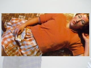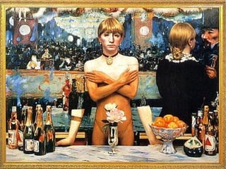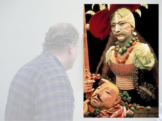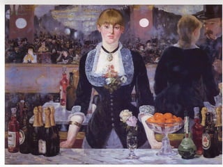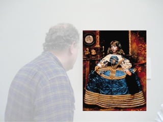 Postmodernism is a contemporary art movement associated with post-industrial societies that questions traditional boundaries and concepts of art and creativity. It draws from multiple art traditions and references contemporary culture through methods like irony, parody, appropriation, and quotation. Postmodern art is grounded in theories like Marxism, feminism, and psychoanalysis.