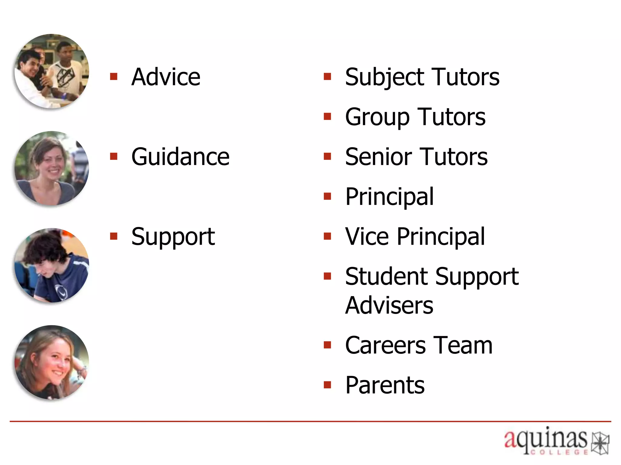 The document outlines the support and resources provided to students and parents for the post-Aquinas education options, including advice on university applications, personal statements, and career opportunities. It includes key dates for application deadlines, student finance information, types of loans and grants available, and guidance on how to prepare for university or apprenticeships. Additionally, it emphasizes the importance of understanding career choices and financial implications of higher education.