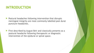 postural headache following therapeutic or diagnostic