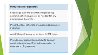 analgesics, bed rest, laxatives should be continued.