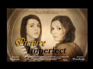 The document discusses movie posters, including what typical elements are included in posters and how they are designed to attract audiences. It analyzes several specific movie posters, noting elements like the use of a main character or scene, names of actors and directors, release date. Posters aim to represent the film and catch viewers' attention through dramatic images and text. The author created their own posters for a film, experimenting with single versus multiple images and design choices like color and layout.