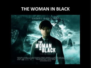 1) The Woman in Black poster uses blue and black tones with surreal lighting to suggest supernatural themes. Composition draws the eye to the cloaked figure.