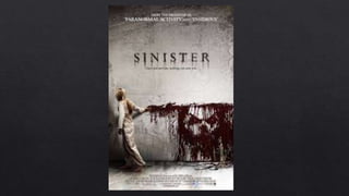 The poster for the horror film "Sinister" establishes a creepy and supernatural atmosphere through its dark title font, shadow effects, and unsettling main image of a face with demonic eyes drawn in blood. This ominous visual is enhanced by the tagline "Once you see him, nothing can save you" and cracked background, drawing viewers into the mysterious and violent story. Information about the director's previous films and a website address provide opportunities to learn more about the film while promoting its upcoming release and viral marketing campaign.