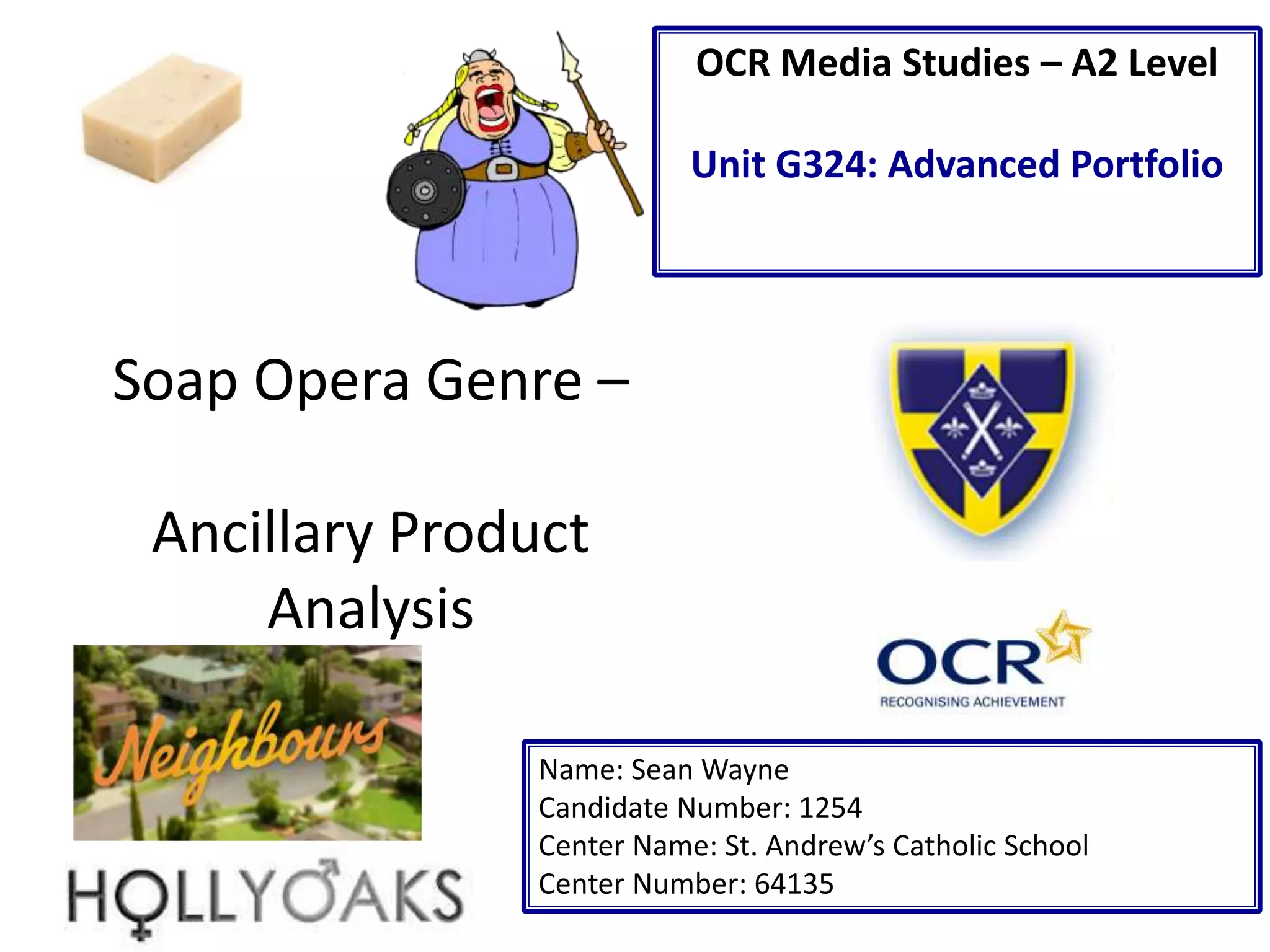 This document analyzes and summarizes three soap opera posters. It discusses the key elements of each poster, including logos indicating the TV channel, titles and air times of the shows, main images depicting relationships between characters or conveying mood, and reviews or social media links to engage audiences. The document concludes by outlining elements the author intends to replicate from the posters in their own soap opera poster, such as the channel logo, air time, reviews, and types of main images used.