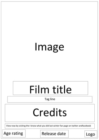 The document appears to be promoting a film called "I know what you did last winter" and provides the film title, tag line, and credits. It directs viewers to visit social media pages on Twitter and Facebook for the film fan page to view the film now. It also includes the film's release date and age rating logos.