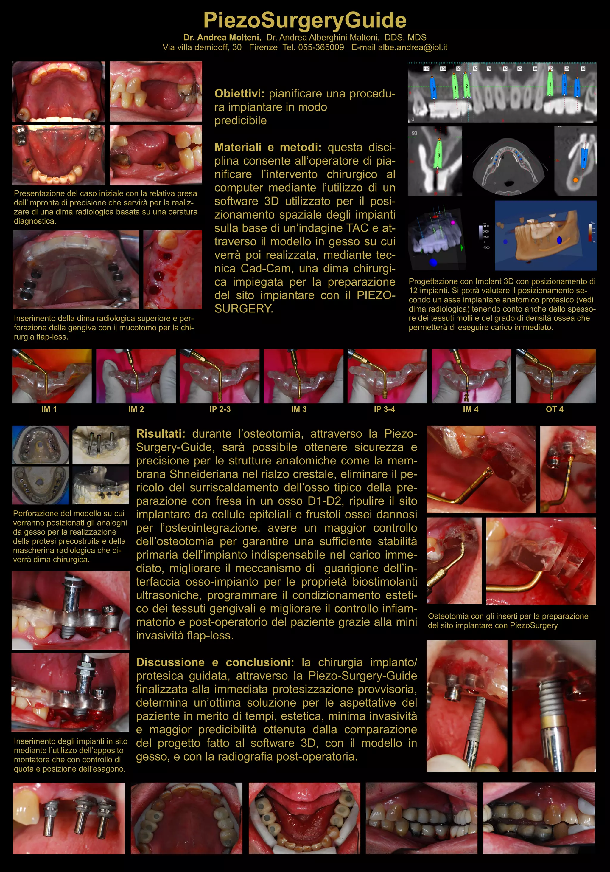Il documento descrive una guida sulla piezosurgery per pianificare procedure implantari predicibili utilizzando software 3D e tecniche CAD-CAM. Viene presentato un caso clinico in cui viene eseguita un'osteotomia con maggiore precisione e sicurezza, con vantaggi per l'osteointegrazione e la mini invasività. Si conclude che la chirurgia guidata offre un'ottima soluzione per le aspettative del paziente in termini di tempi, estetica e predicibilità.