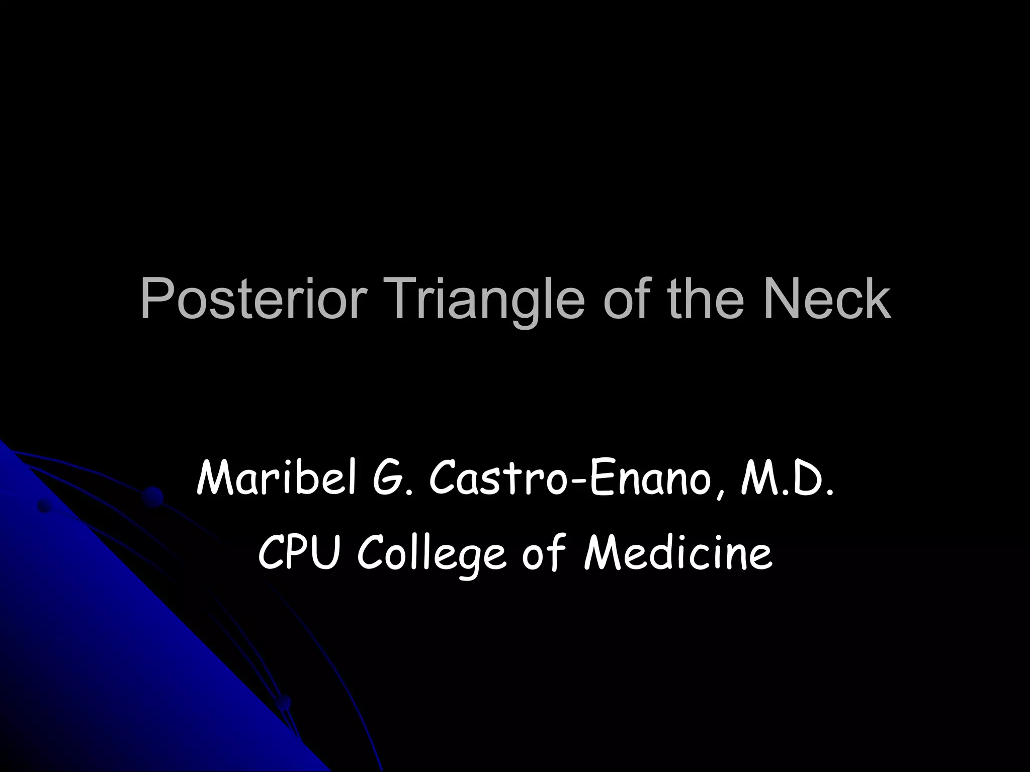 The document summarizes the anatomy of the posterior triangle of the neck, including its boundaries, contents, and structures. It describes the boundaries as being formed by the middle third of the clavicle, sternocleidomastoid muscle, and trapezius muscle. The main contents include the accessory nerve, cutaneous cervical nerves, omohyoid muscle, external jugular vein, subclavian vessels, and brachial plexus trunks and cords.