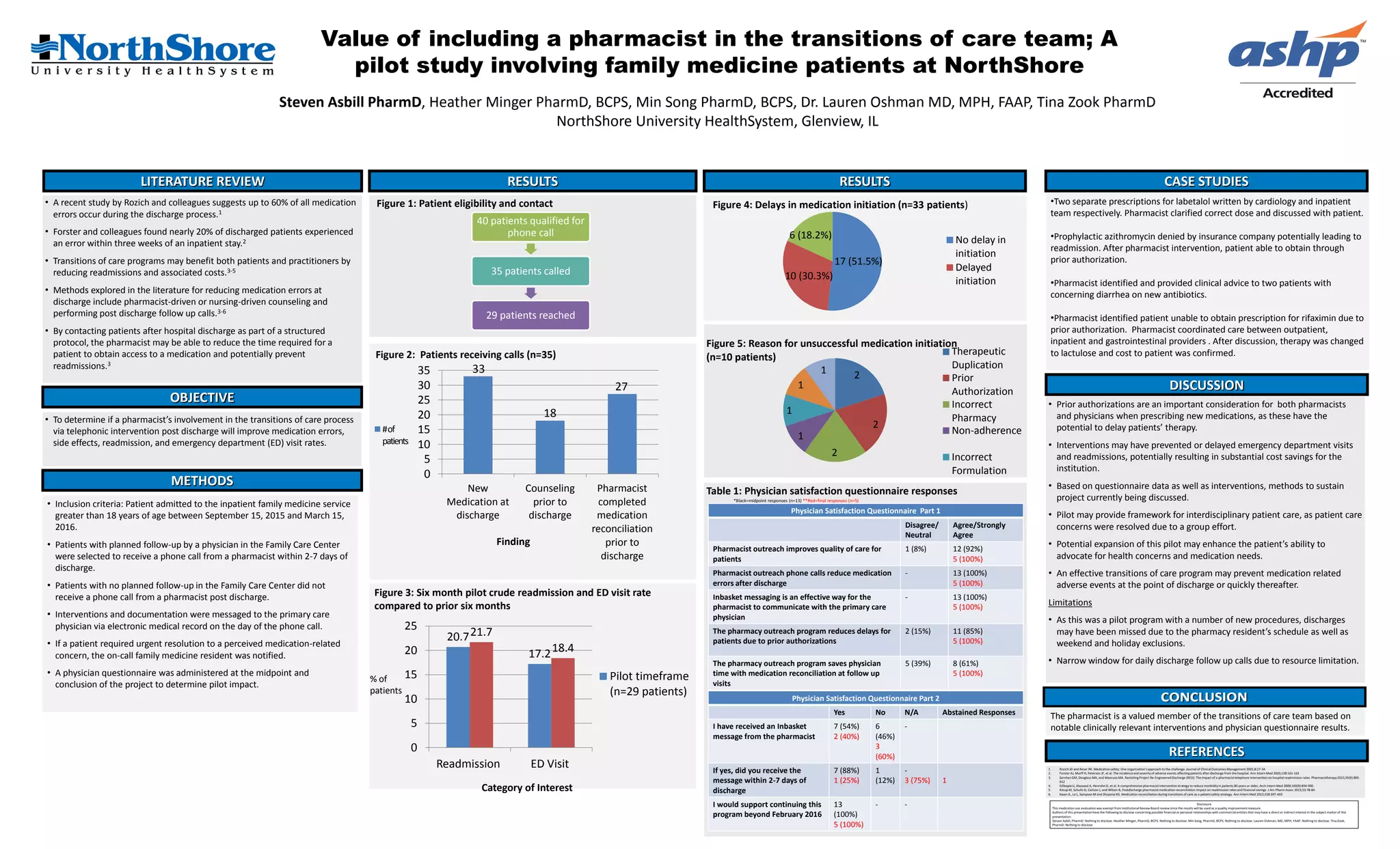 - A pharmacist called patients within 2-7 days of discharge and documented any interventions in the electronic medical record. This reduced medication errors and delays in initiating new medications.