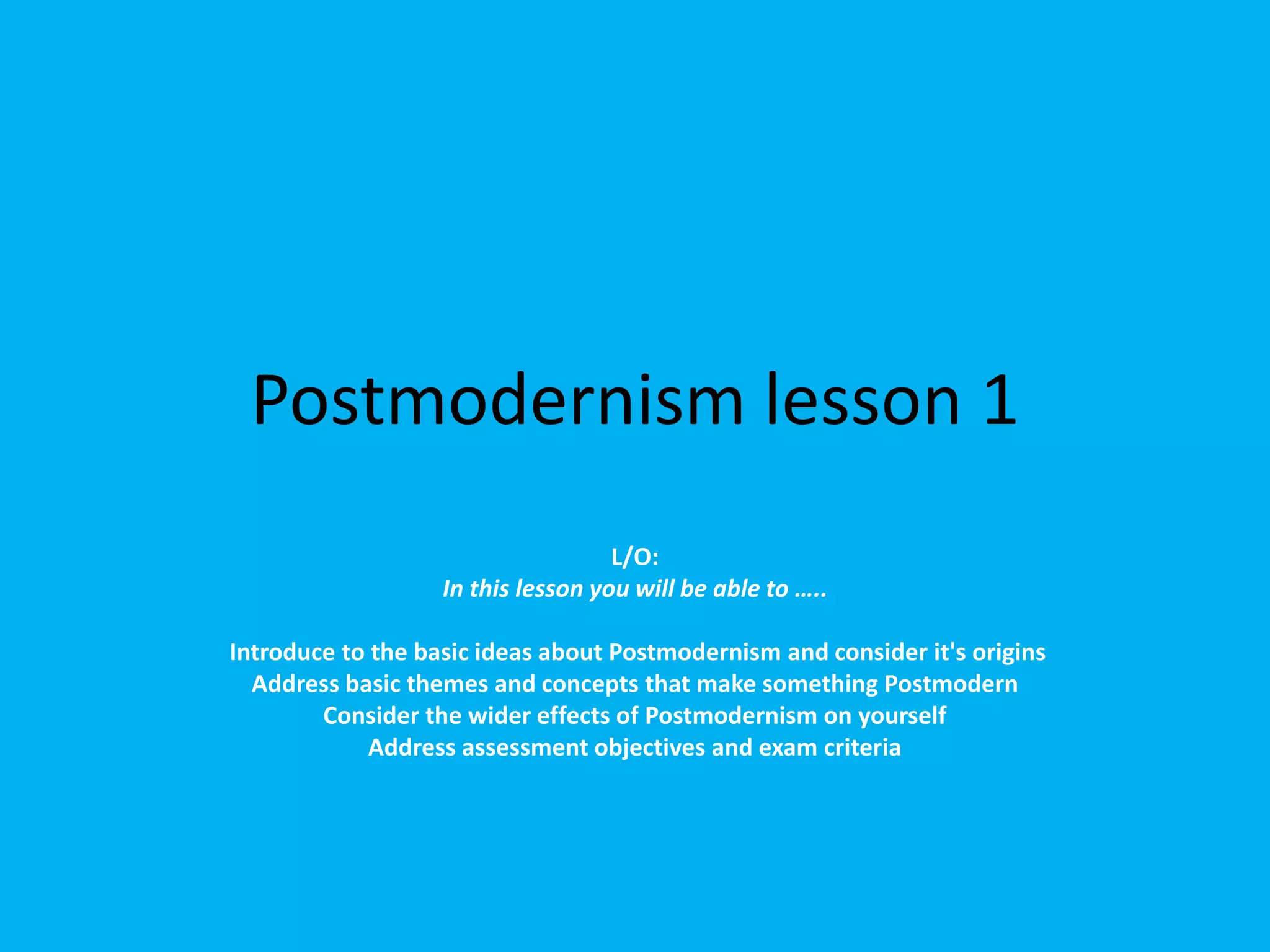Postmodernism lesson 1 introduces some of the basic ideas and concepts of postmodernism. It discusses the origins and key themes of postmodernism, including its skepticism of grand narratives and emphasis on individual experimentation. The document outlines some previous artistic and cultural movements like modernism to provide context. It also examines some key postmodern features such as pastiche, parody, intertextuality, and self-reflexivity. Students are assigned a task to create a presentation on a postmodern text that demonstrates at least two of these concepts.