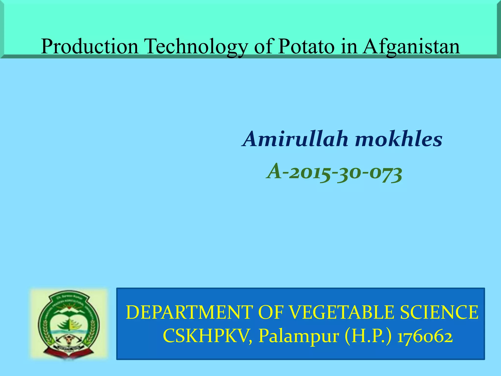 Potato production is an important part of Afghanistan's agriculture. The country's climate is well suited for potato cultivation, which occurs across nine provinces but is concentrated most heavily in Bamyan province. The most common varieties grown are Safed gul, Be gul, Sabz gul, Sorkh gul, Chandramukhi, Cardinal and Desiree. Total potato production area in Afghanistan is estimated at 23,500 hectares with an average yield of 13.5 metric tons per hectare. Potatoes are a staple food in Afghan cuisine and per capita consumption is estimated at 20 kilograms annually. Common potato diseases and pests faced by Afghan farmers include various fungal diseases like late blight and early blight as well