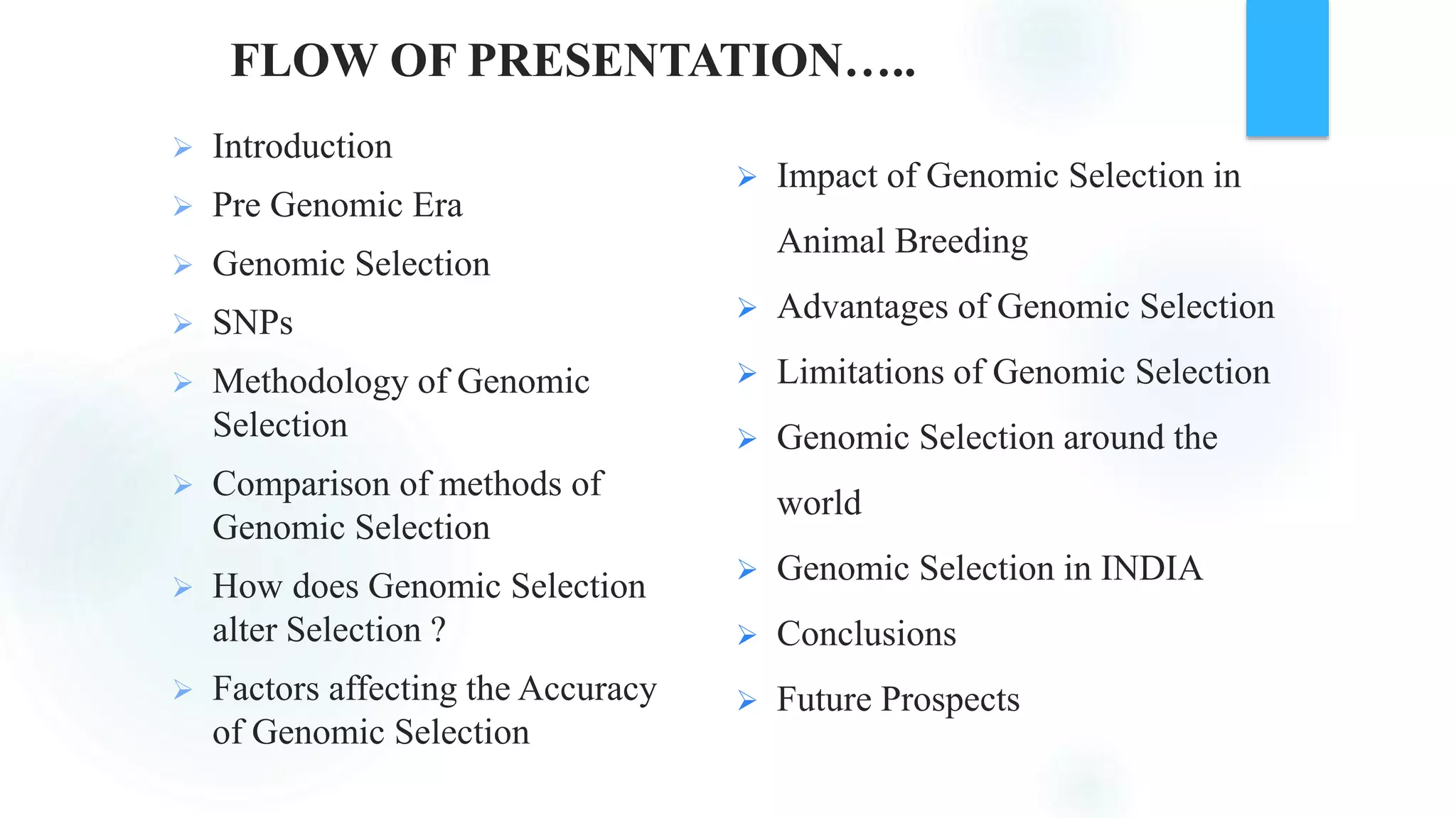 The document discusses the potential of genomic selection in indigenous cattle breeds, highlighting its methodology, advantages, limitations, and impact on animal breeding. It details the shift from traditional breeding methods to modern genomic approaches utilizing SNP markers and emphasizes the need for accurate phenotypic records. The findings suggest significant improvements in breeding efficiency, genetic gain, and selection accuracy, particularly for traits that are typically challenging or costly to measure.