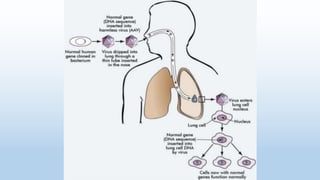 Gene therapy has potential to treat many genetic diseases by introducing normal genes into patients' cells to compensate for mutated genes. Some potential target diseases include: