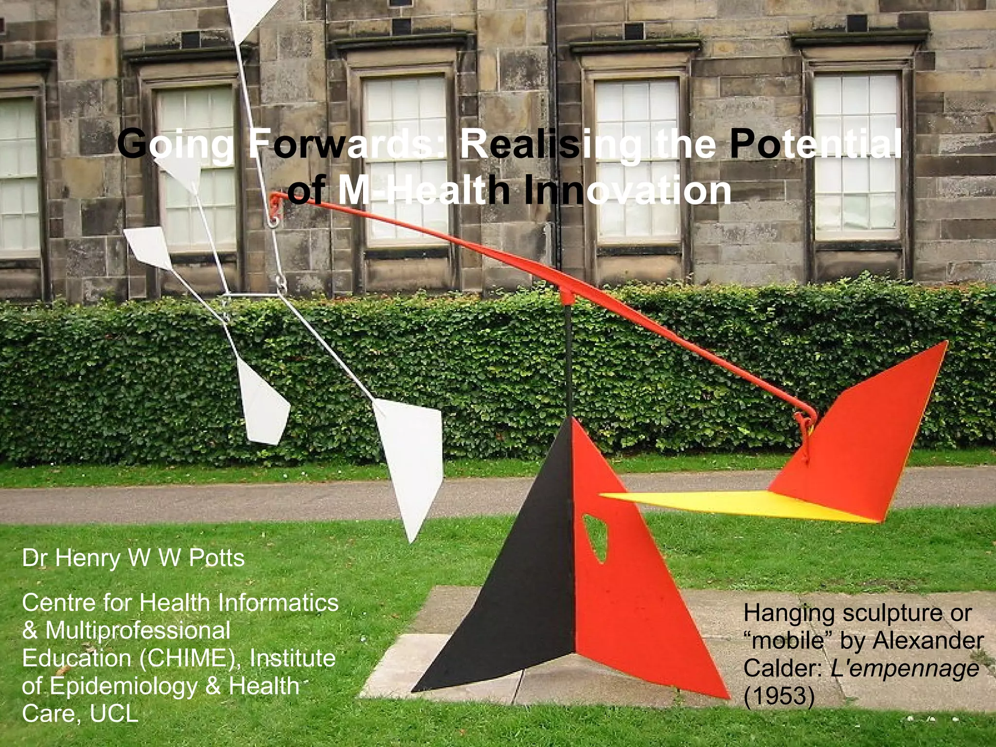 (1) Mobile technologies have significant potential for m-health applications with over 4.6 billion users worldwide and phones that function as computers. (2) However, past technological innovations in electronic health records have faced challenges, such as delays, unreliable cost estimates, and security breaches compromising patient records. (3) Key principles for successful technology innovation include involving users in design, allowing co-evolution of technology and usage patterns, addressing organizational issues, and getting infrastructure right to support technology goals.