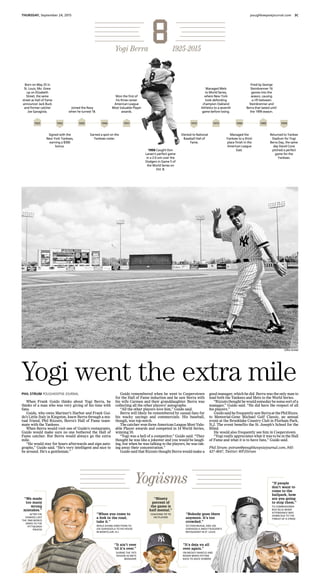 Yogi Berra, the Hall of Fame baseball player and manager, passed away at the age of 90. He had an illustrious career playing for and managing the New York Yankees, winning numerous championships. Berra was known not only for his playing accomplishments, but also for his amusing and insightful sayings. After his playing and managing days, Berra enjoyed spending time with fans, often signing autographs for hours at events and restaurants. He appreciated the fans and the honor of being inducted into the Baseball Hall of Fame.