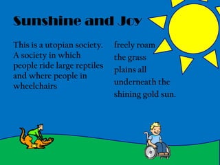 Poverty is a harsh reality for many people in contrast to utopian ideals of carefree living. A survey found that over half of respondents believe there is at least a little poverty in their city, and most people volunteer or help needy people only sometimes or less. Daily life for those in poverty may involve struggling to afford basic needs.