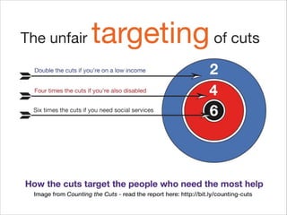 The document discusses the poverty and welfare reform crisis in the UK, highlighting significant inequality despite the country's wealth and detailing the adverse effects of welfare cuts on vulnerable populations. It criticizes the government's welfare reforms as detrimental to the poorest and calls for a new framework that emphasizes human rights, equitable tax-benefit systems, and support for families and communities. The urgency for action is underscored by rising food insecurity and the moral responsibility to address hunger and advocate for change.