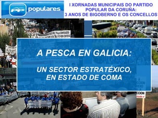 A PESCA ENGALICIA: UN SECTOR ESTRATÉXICO, EN ESTADO DE COMA 19 XULLO 2008 I XORNADAS MUNICIPAIS DO PARTIDO POPULAR DA CORUÑA: 3 ANOS DE BIGOBERNO E OS CONCELLOS A PESCA EN GALICIA: UN SECTOR ESTRATÉXICO, EN ESTADO DE COMA