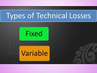 • Thetechnical losses are due to energy dissipated in