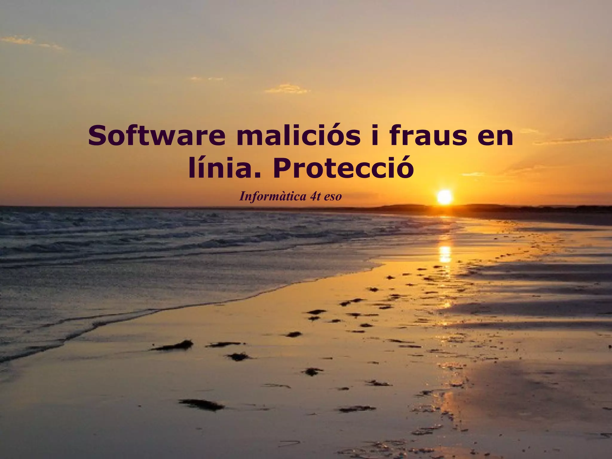 Què és elsoftware maliciós? Qualsevol programa, document o missatge que pot ser perjudicial per al nostre ordinador, tant per la perdua de dades que ens pot ocasionar com per la reducció de rendiment de l’equip i l’ús il·legal que se’n pugui fer.