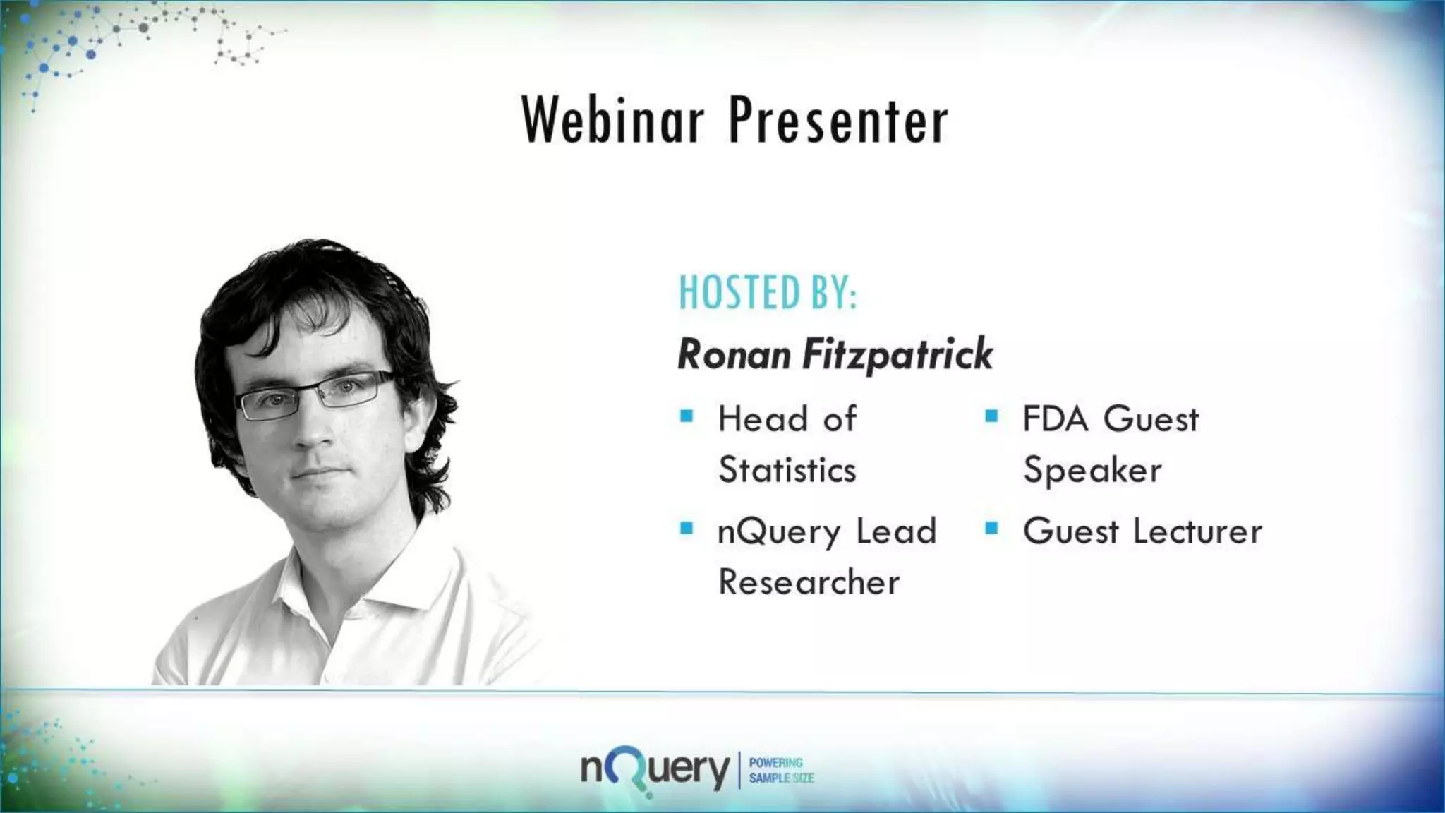 This webinar presentation introduced sample size determination for survival analysis. It discussed how to estimate the appropriate sample size, key considerations for survival analysis including expected survival curves and handling dropouts. It demonstrated an example in nQuery software to calculate the sample size needed for a clinical trial to show a risk reduction in progression-free survival between treatment arms. The webinar concluded with plans to further enhance survival analysis capabilities in nQuery and addressed questions from participants.