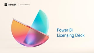 The document outlines the licensing options for Microsoft Fabric and Power BI, detailing various product offerings including Power BI Pro, Power BI Premium per User, and Power BI Embedded. It explains pricing structures based on capacity and user licenses, as well as features available with each license type along with migration information for existing Power BI Premium customers. The document also emphasizes the integration of AI capabilities and the unified data foundation provided by Microsoft Fabric, streamlining analytics and data management for organizations.