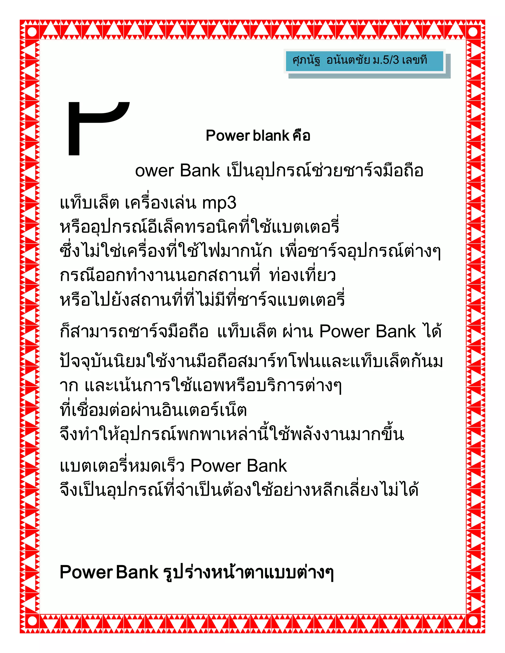 ower Bank เป็นอุปกรณ์ช่วยชาร์จมือถือ