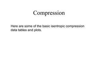 The document provides detailed data tables and plots on isentropic compression, combustion, and expansion processes involving various working fluids, particularly air. It includes specific parameters such as temperatures, pressures, and specific power inputs and outputs for each process. Additionally, it outlines combustion analysis for different fuels and their stoichiometric conditions.