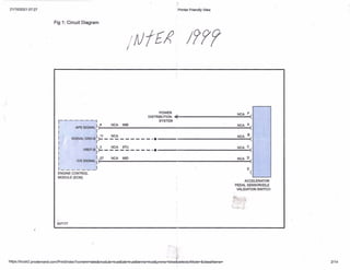 This document contains circuit diagrams and wiring information for an International 4000 Series truck with a DT466E diesel engine from 1999. The first figure shows the engine performance circuit diagram on the chassis side, with labels for various engine sensors and their wire connections. The second section provides a table identifying fuse and relay locations in the power distribution box, along with their ratings and functions.
