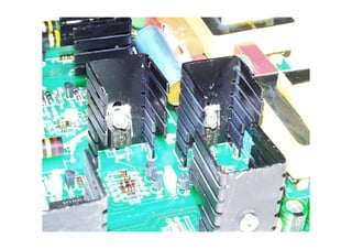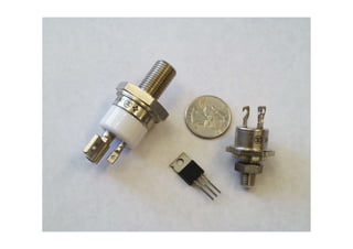 This document discusses power electronic devices and their characteristics. It describes several types of power devices including bipolar junction transistors (BJT), field effect transistors (FET), thyristors, Darlington transistors, and insulated gate bipolar transistors (IGBT). It covers the key characteristics, operating principles, and ratings of these devices. It also discusses how snubber circuits using inductors, resistors, and capacitors can be designed to protect power devices from high rates of change of current (di/dt) and voltage (dv/dt) during switching.