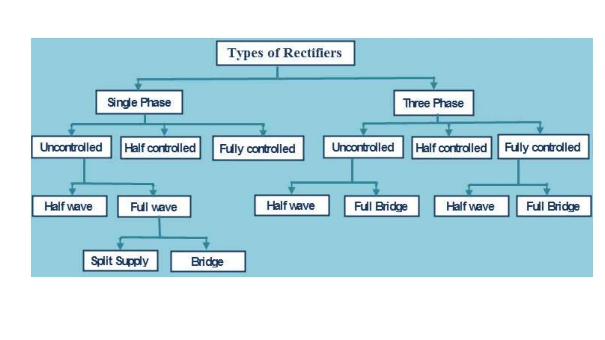 Describes different types of controlled rectifiers: uncontrolled, half-controlled, fully controlled, and specific modes like half wave and full wave.