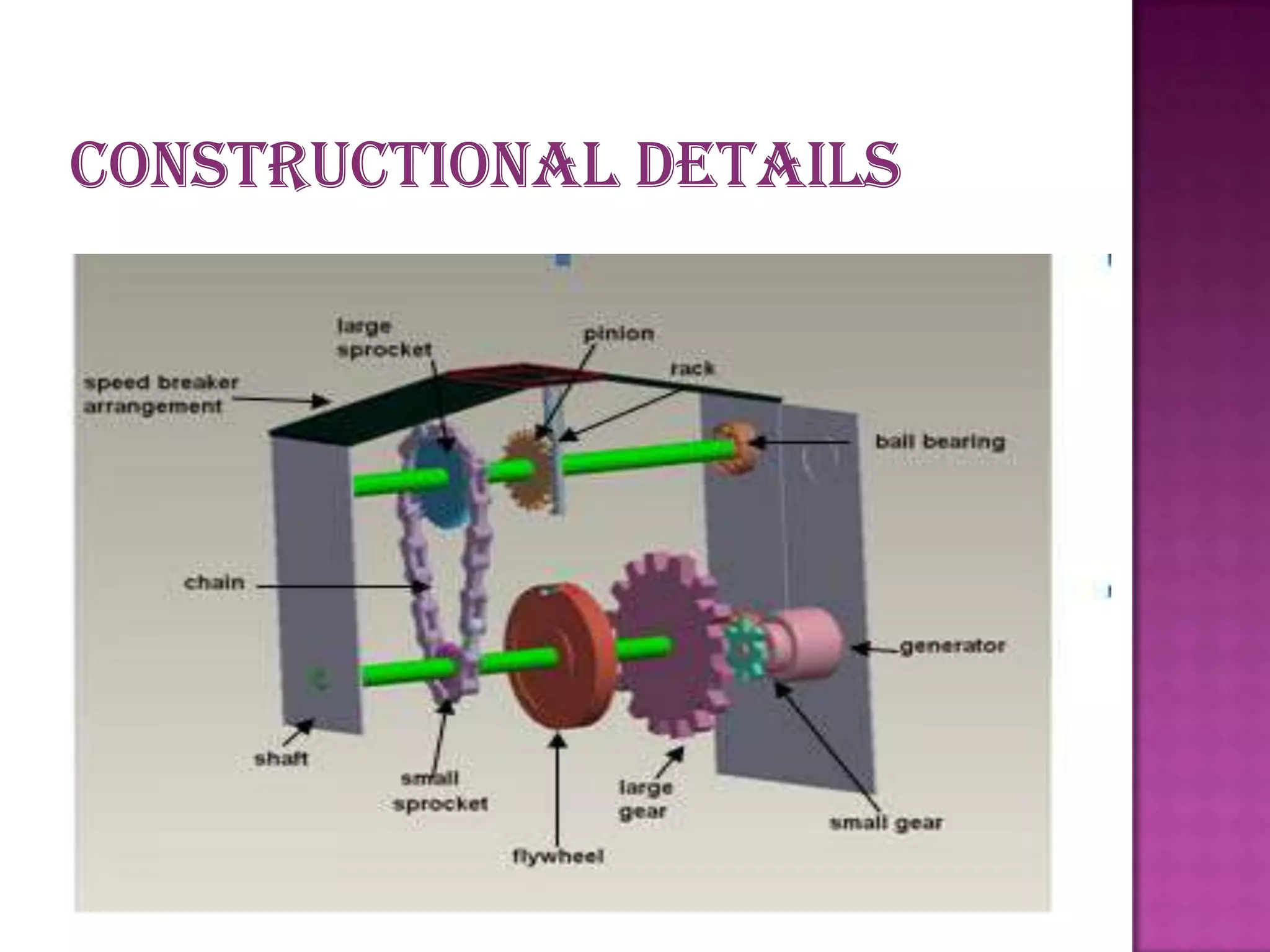 Explains how reciprocating motion from speed breakers is converted into rotary motion using rack and pinion mechanisms.