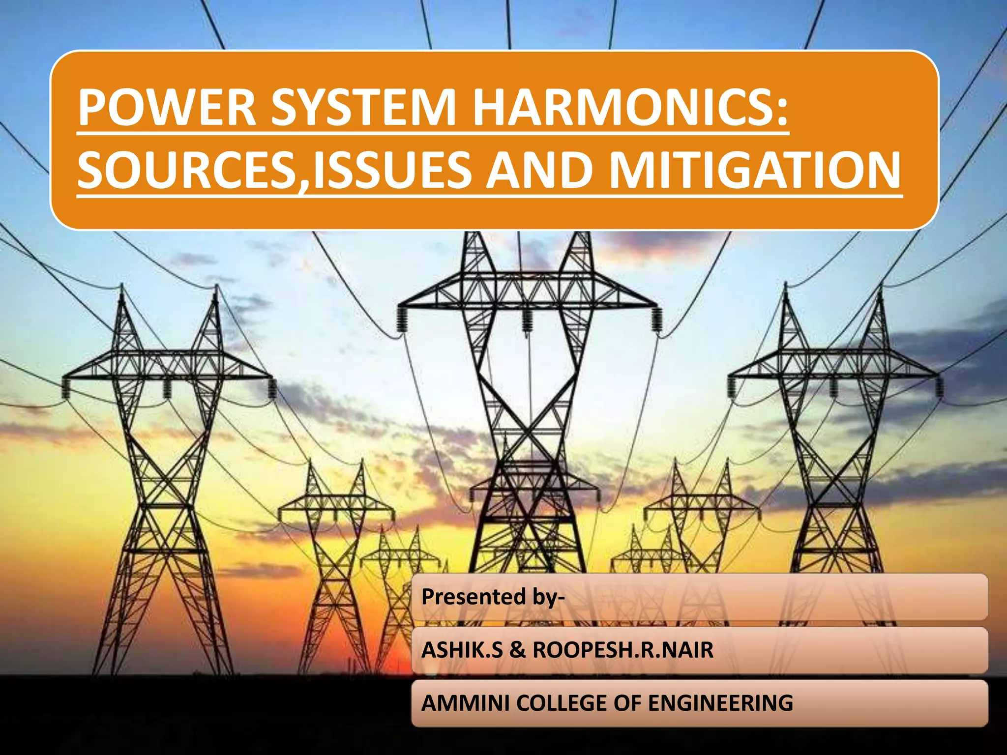 The document discusses power system harmonics, covering their sources, issues, and mitigation techniques. It highlights the impact of non-linear loads, such as electronic devices, on harmonic generation and the related problems, including voltage distortion and overheating of transformers. Various mitigation strategies, including passive and active filters, as well as isolation transformers, are presented to reduce harmonics in power systems.