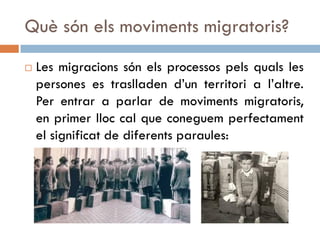 IMMIGRACIÓ: procés d’arribar a un territori des d’un