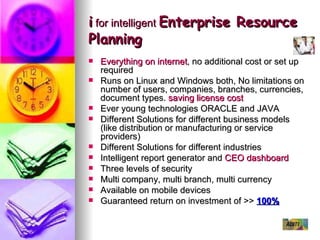 - Runs on Linux and Windows and has no limitations on number of users, companies, branches, or currencies.