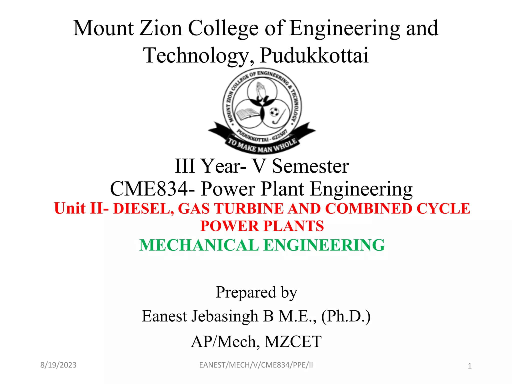 The document discusses the components of diesel engine power plants. It describes the various systems that are part of diesel engines like the air intake system, fuel system, injection system, lubrication system and cooling system. It explains the working of key components such as the fuel pump, injector and nozzle. The summary provides an overview of the layout and major components of diesel engine power plants.