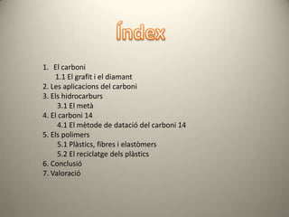 -El carboni ésun element essencial per a la vida dels éssers vius