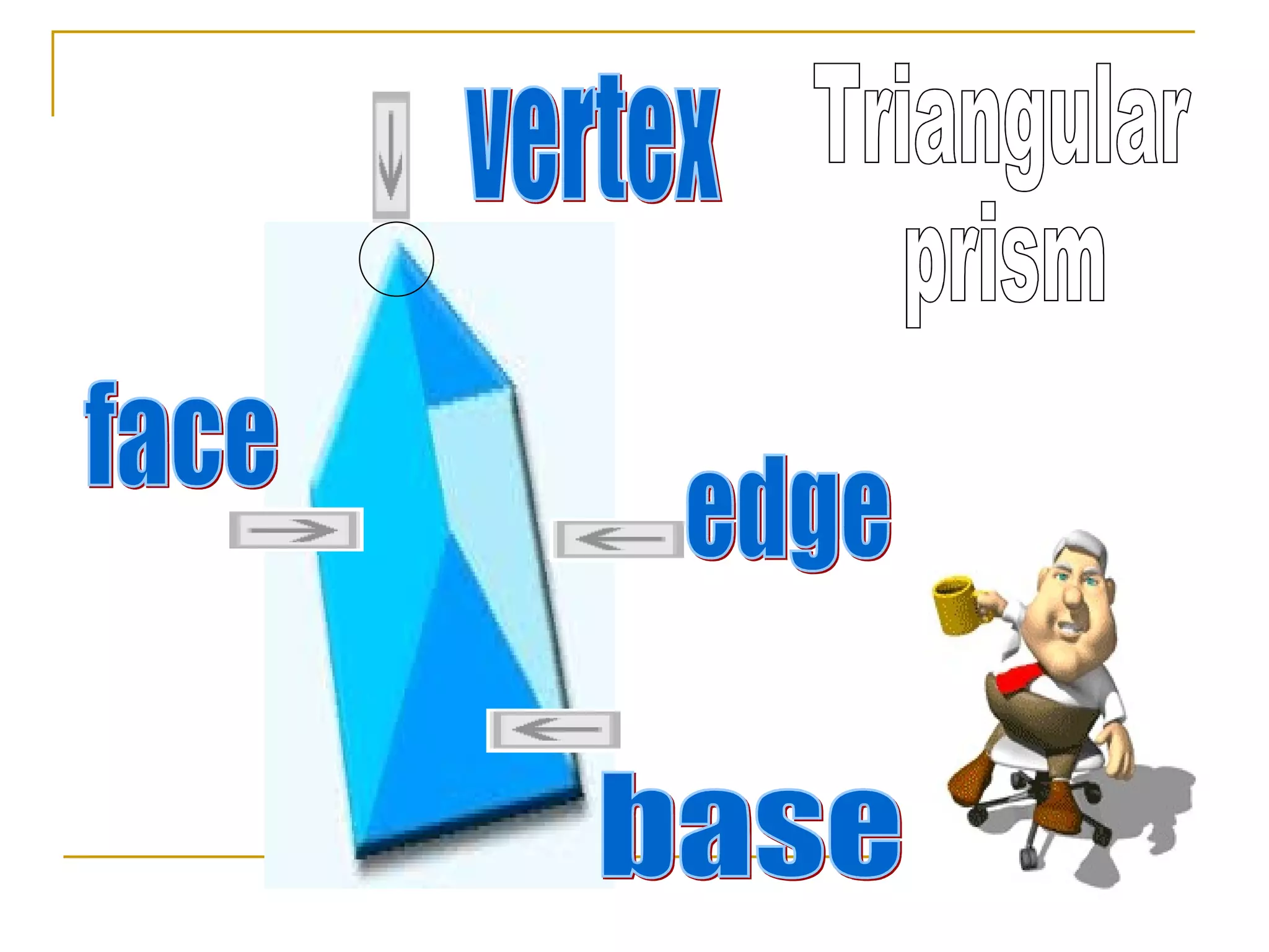 This document asks several geometry questions about the number of edges, faces and vertices on different 3D shapes including: how many edges are on a triangular prism and cube; how many edges are on a cube and 3 cylinders; how many faces are on a cuboid, cone and triangular prism; and how many vertices are on 4 cubes, a cone and cylinder.