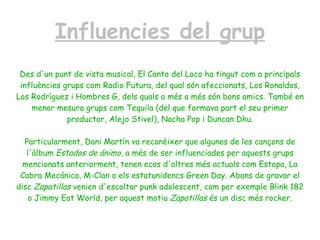Des d'un punt de vista musical, El Canto del Loco ha tingut com a principals