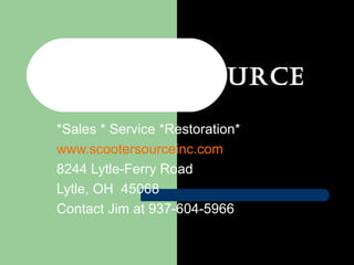 Scooter Source is a business located at 8244 Lytle-Ferry Road in Lytle, OH that specializes in sales, service, and restoration of scooters. Their contact is Jim, who can be reached at 937-604-5966. The document also contains short messages about playing with and keeping children safe, as well as teaching them. It includes two identical charts showing quarterly performance for different regions, with the East region performing the best across all quarters.