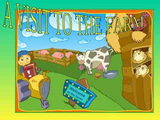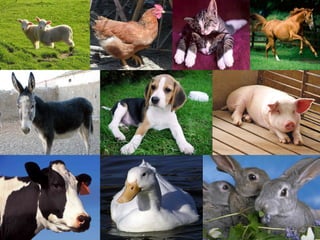 This document provides information about different animals found on a farm and in a zoo. It lists the names of common farm animals like cows, horses, sheep, pigs, dogs, ducks, donkeys, hens, rabbits, mice and describes some of their key characteristics. It then lists animals found in a zoo such as elephants, giraffes, parrots, lions, bears, tigers, fish, monkeys, moose, crocodiles, penguins and encourages that animals can be our friends. The document conveys information about different types of animals in a simple, bullet-point format.