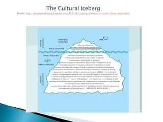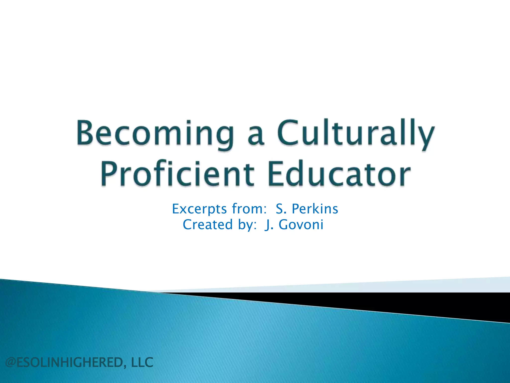 Transformation in education will lead to a culturally proficient society with empowered teachers. Culture is defined as a dynamic, learned, and shared system composed of surface and deep traits that help groups predict behaviors and survive. Educators must develop culturally proficient practices, believe in diversity, and facilitate learning for all students to establish an inclusive environment.