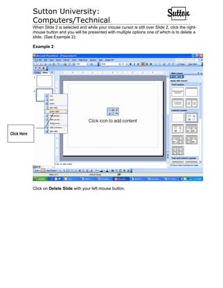 To delete a slide in PowerPoint, select the slide on the left sidebar by clicking it with the left mouse button. Right click the selected slide and choose "Delete Slide" from the options. This will remove the slide, showing one fewer slide remains to indicate successful deletion.