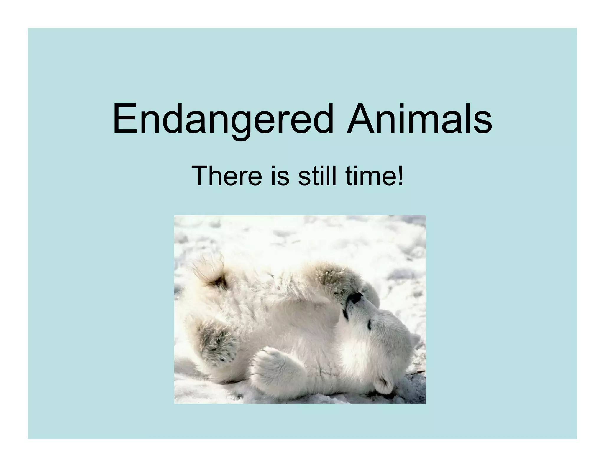 The document discusses endangered animals and conservation efforts. It describes how the conservation meter at zoos shows an animal's status in the wild. Species become endangered due to factors like habitat loss, disease, and human activity. Extinction is the disappearance of an entire species, which can occur naturally or due to human impacts that are destroying habitats and introducing threats. Zoos are working to conserve species through programs like Species Survival Plans, which manage breeding populations across zoos to maintain genetic diversity and prevent extinction.